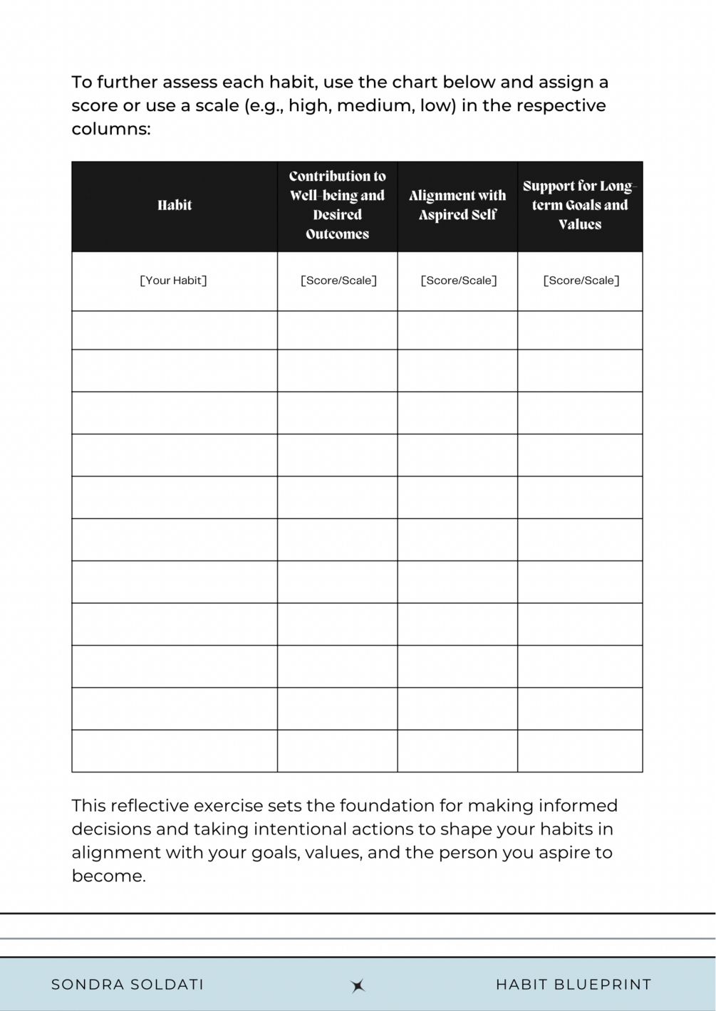 In this blueprint, you will begin a journey of self-discovery and personal growth, exploring the psychology and profound impact of habits on your life. Each chapter is carefully crafted to guide you through the habit-shifting process, ensuring you gain the clarity, resilience, and tools needed for lasting change.